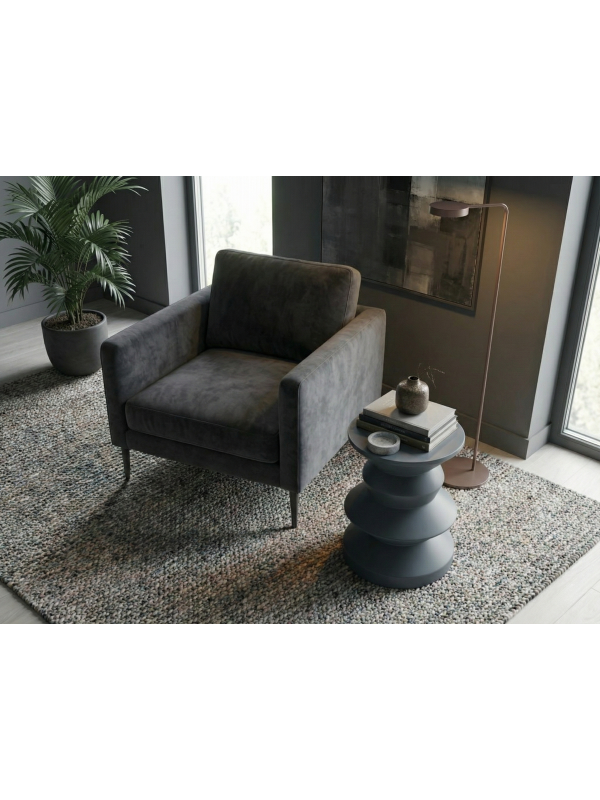 Antrasit Askella yan sehpa, modern, minimal, endüstriyel ve bohem dekorasyon stilleriyle mükemmel uyum sağlar. Nötr ve güçlü renk yapısı sayesinde salon, ofis, kafe ve otel projelerinde sade ama etkileyici bir görünüm sunar.