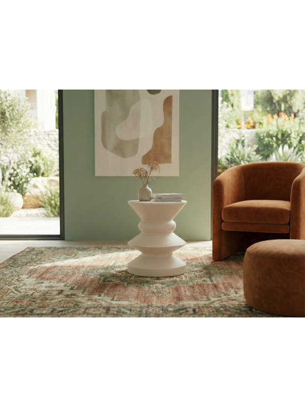 Keten beyazı Askella yan sehpa, klasik beyaza göre daha sıcak ve doğal bir görünüm sunar. Açık renkli dekorasyonlarda bütünlük sağlar, koyu renk mobilyalarla ise dengeli bir kontrast oluşturur. Modern, minimal ve bohem stiller için ideal bir tamamlayıcıdır.