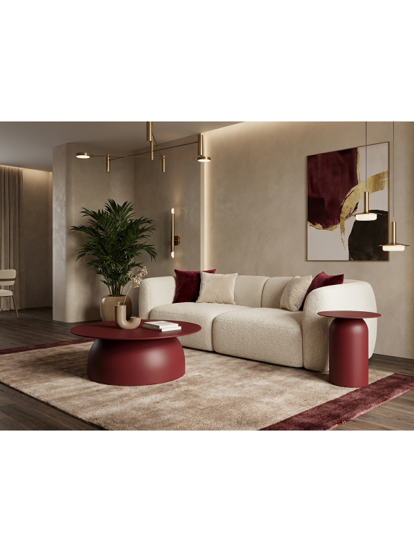 Kastra bordo orta sehpa ile Polaris bordo yan sehpa, derin ve etkileyici renk tonu sayesinde yaşam alanlarında sofistike ve karakterli bir atmosfer oluşturur. Ev, ofis, kafe, otel ve restoran gibi farklı mekânlarda dekorasyona güçlü bir vurgu kazandırır.
